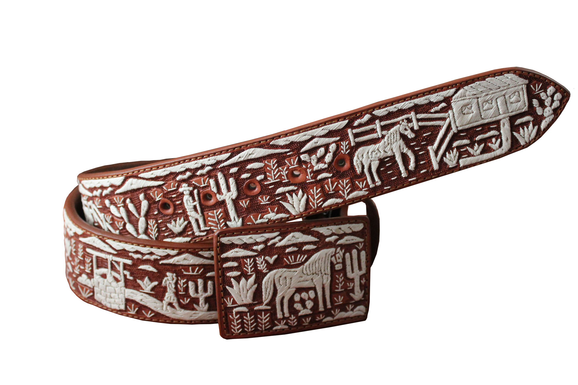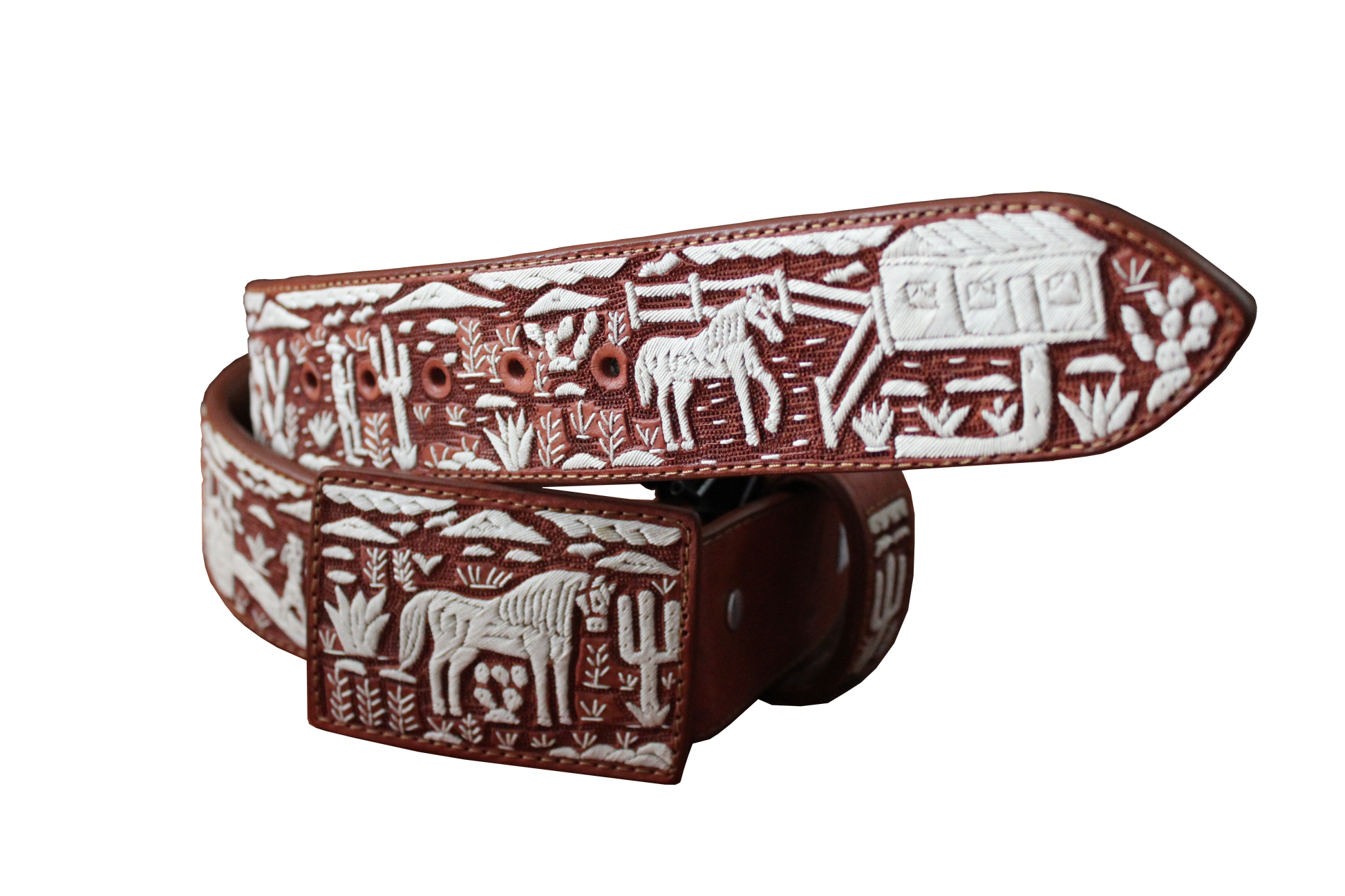 Forjado a mano con vaqueta de res de primera calidad, este cinto luce una pita finamente bordada que enmarcan la vida del campo. Su color canela evoca la calidez de la tierra y la nobleza del vaquero que lo porta, transmitiendo orgullo, fuerza y autenticidad en cada detalle.